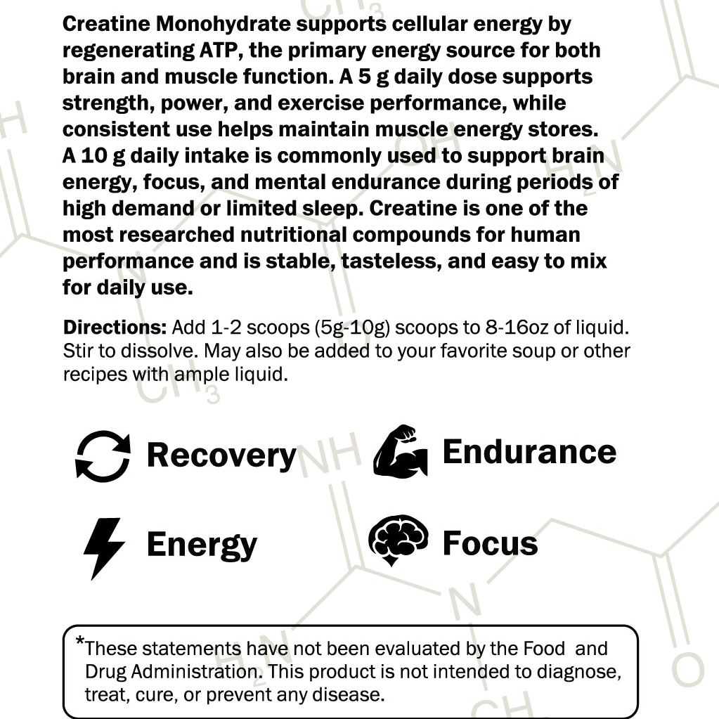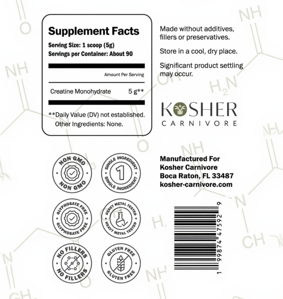 Clean, functional creatine monohydrate, Star-K Kosher certified.